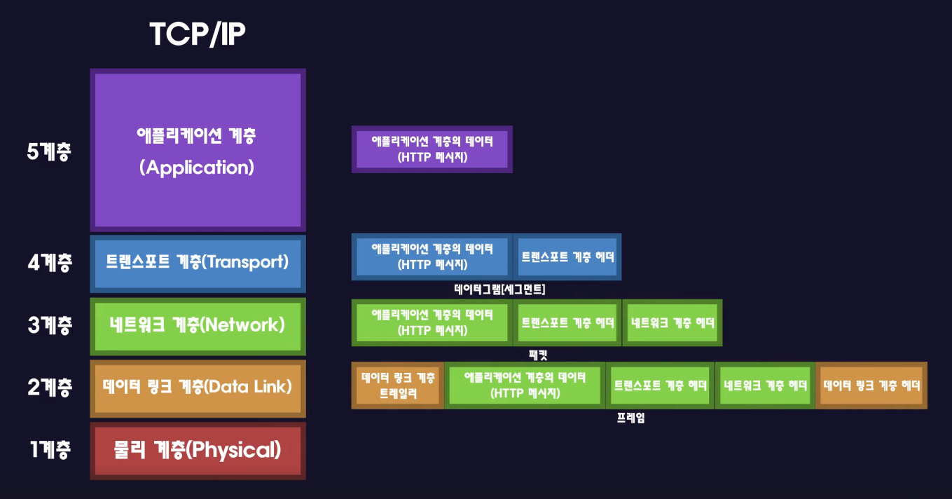 | 2. 인터넷 계층 | IP 주소를 이용해 목적지까지 데이터 전달 | IP, ICMP, ARP |