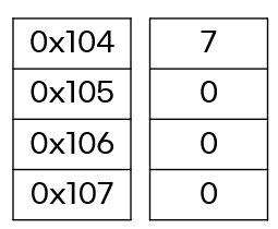 주소: 0x100 값: 7