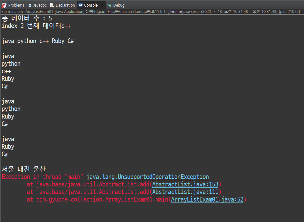 ArrayList 리μ€νΈμμ μ 곡νλ μΆμλ©μλλ₯Ό λ€ κ°κ³ μλ€.
