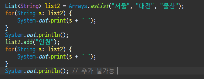 List<String> list2 = Arrays.asList("μμΈ", "λμ ", "μΈμ°");