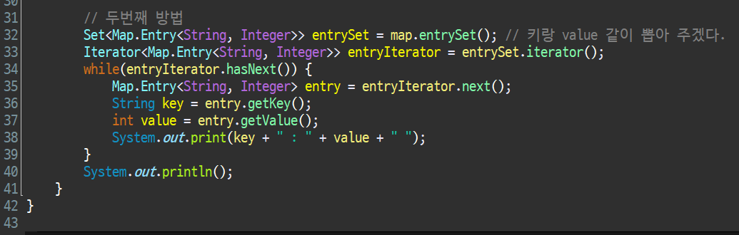 Set<Map.Entry<String, Integer>> entrySet = map.entrySet(); // ν€λ value κ°μ΄ λ½μ μ£Όκ² λ€.