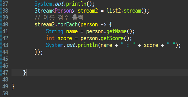 stream.forEach(city -> System.out.print(city + " ")); // for each λ΄λΆμμ λ°λ³΅
