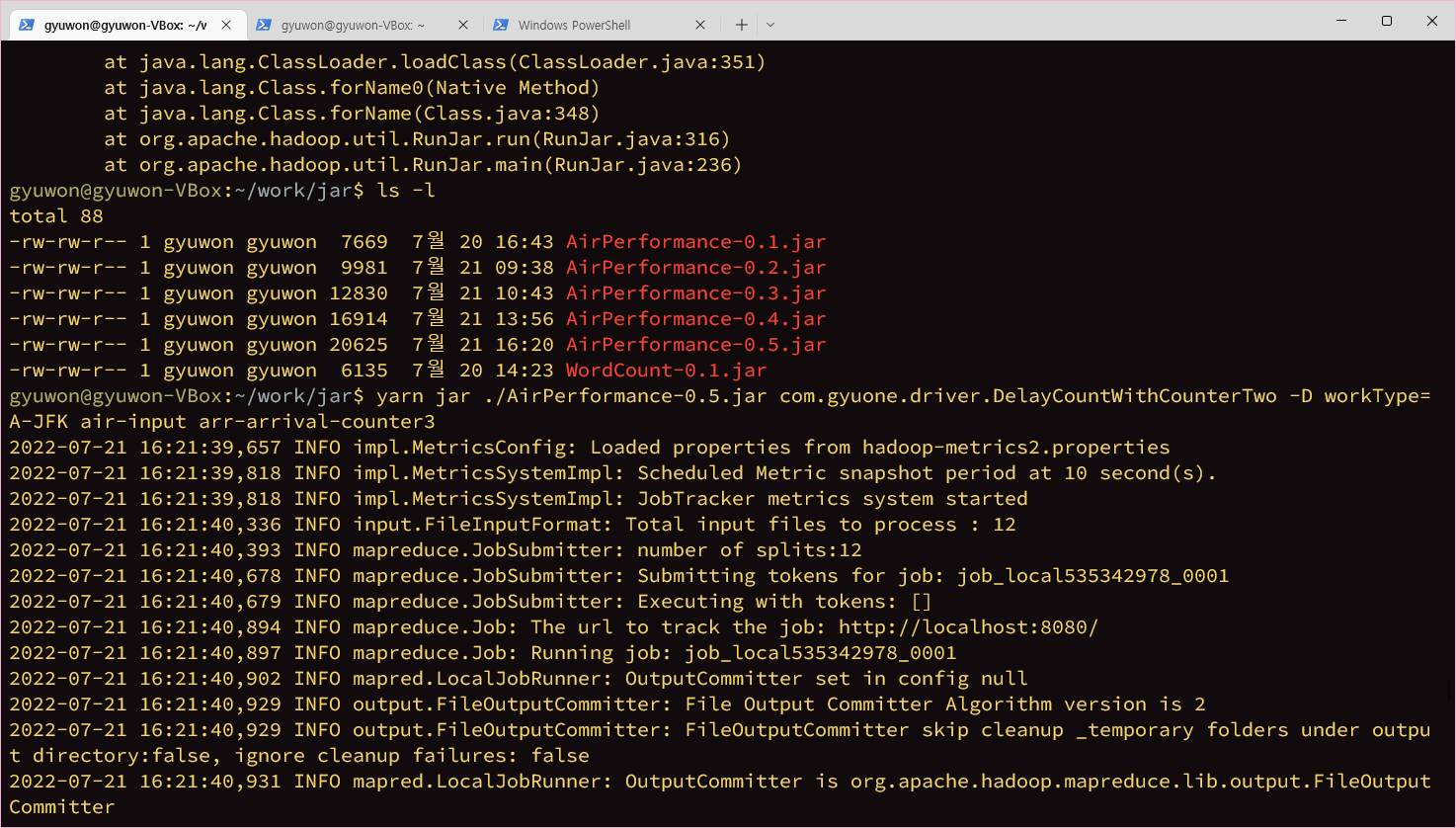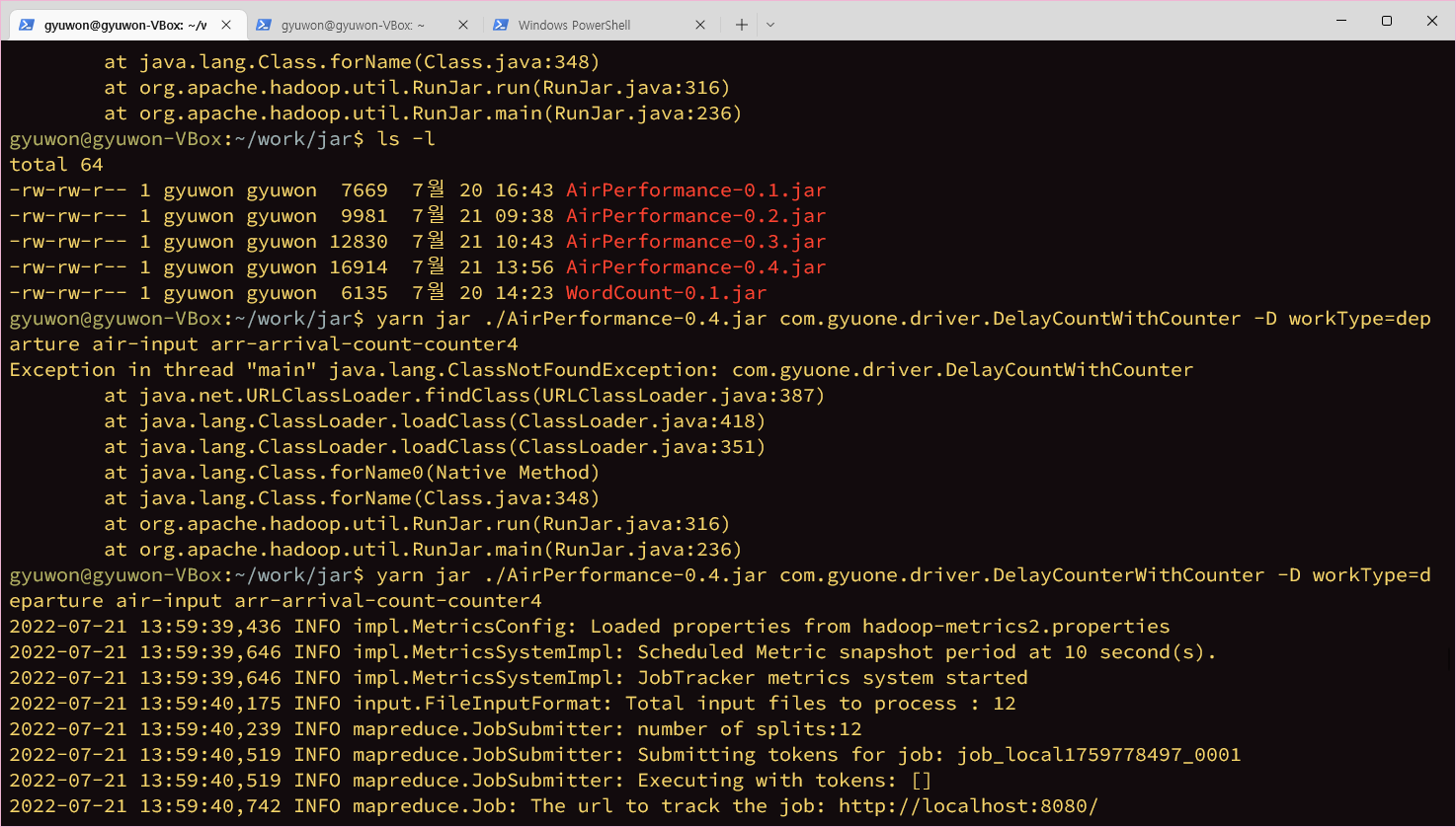 yarn jar ./AirPerformance-0.4 jar com.gyuone.driver.DelayCounterWithCounter -D workType=departure air-input arr-arrival-count-counter4