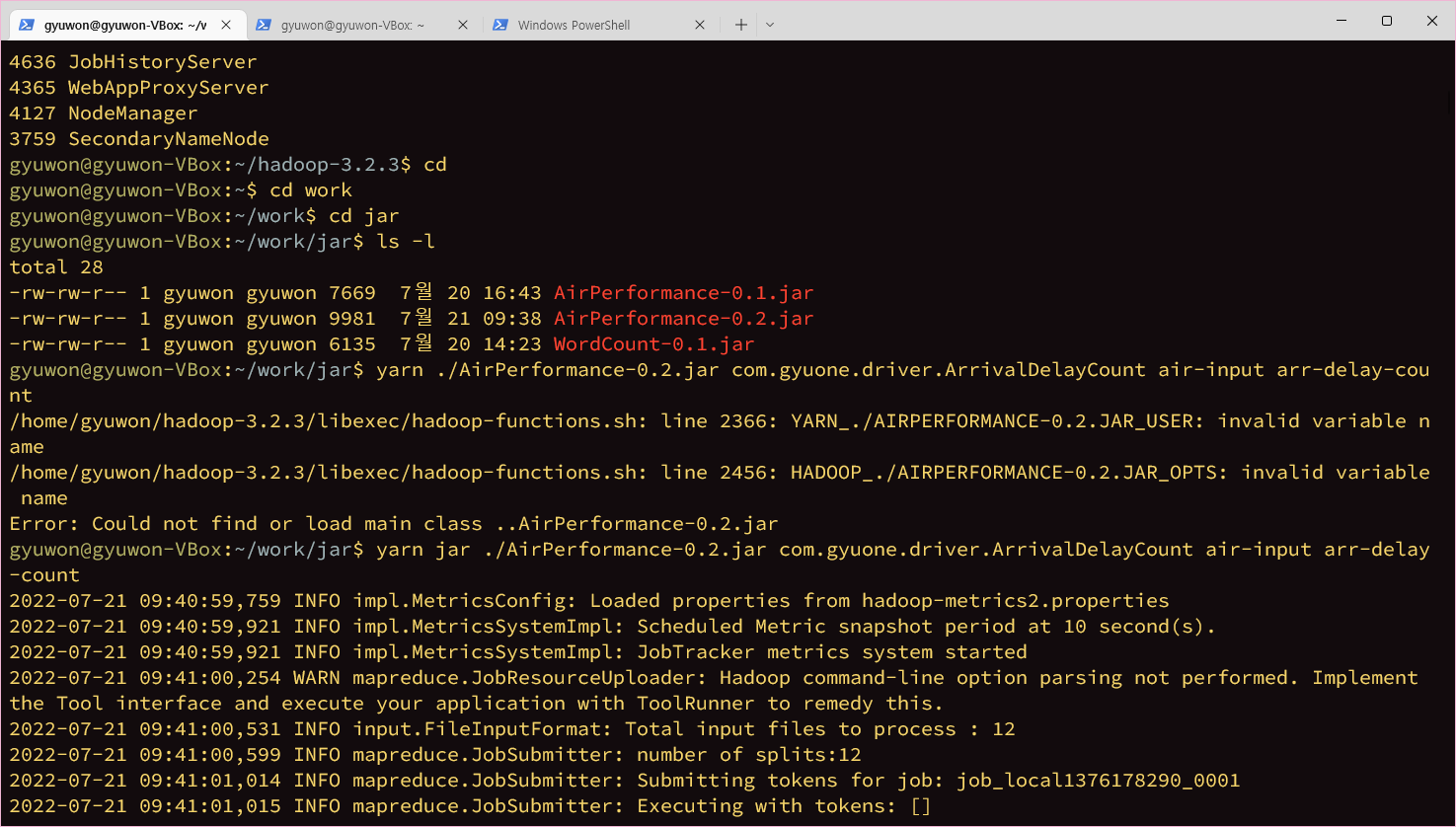 yarn ./AirPerformance-0.2 jar com.gyuone.driver.ArrivalDelayCount air-input arr-delay-count