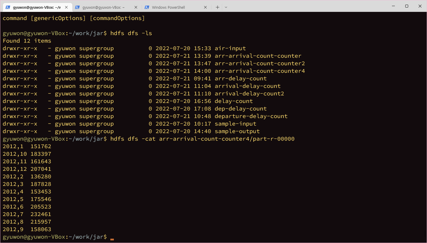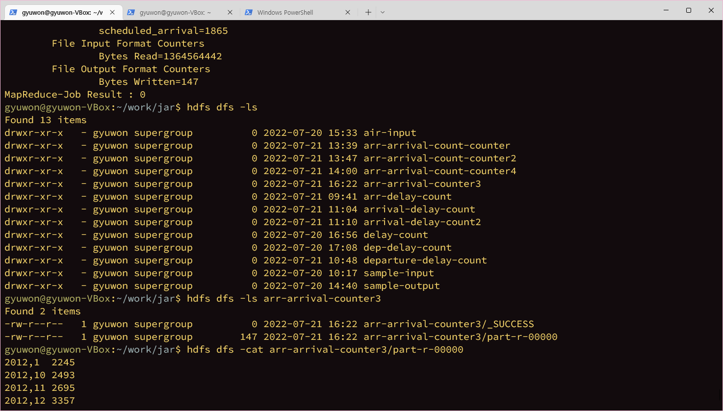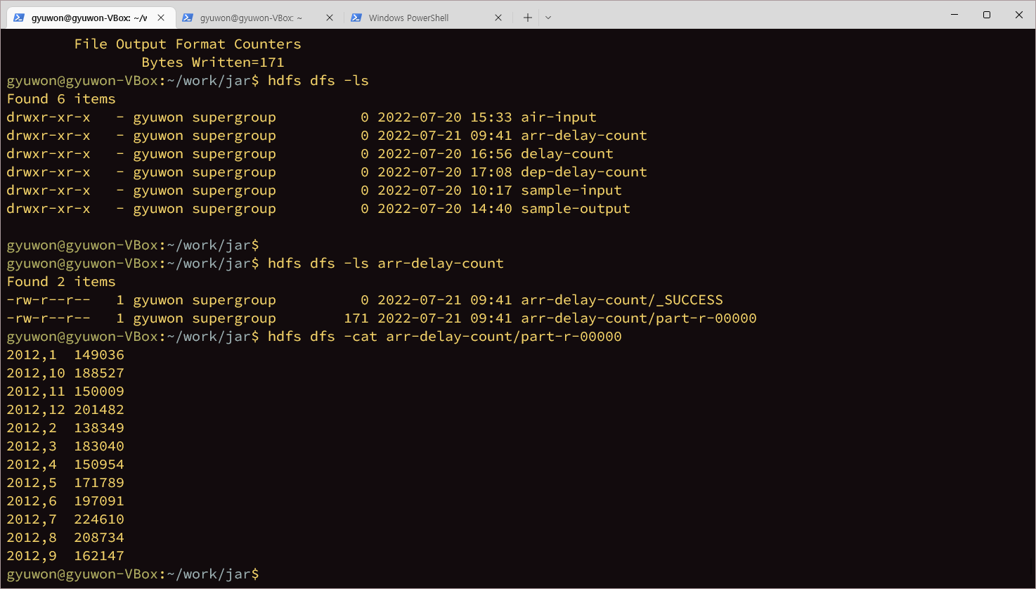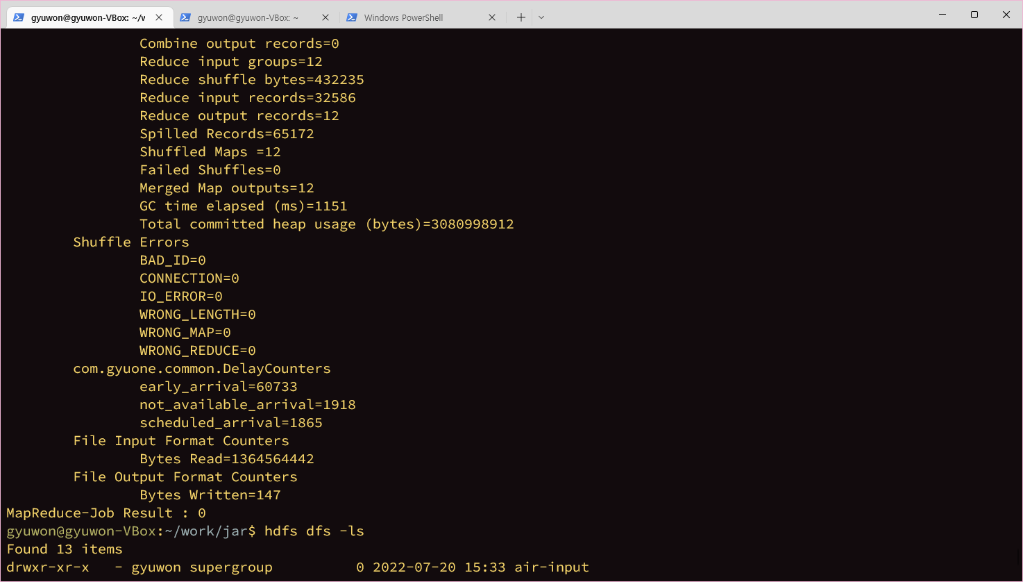 hdfs dfs -ls arr-delay-count하면 success 뜨는거 확인