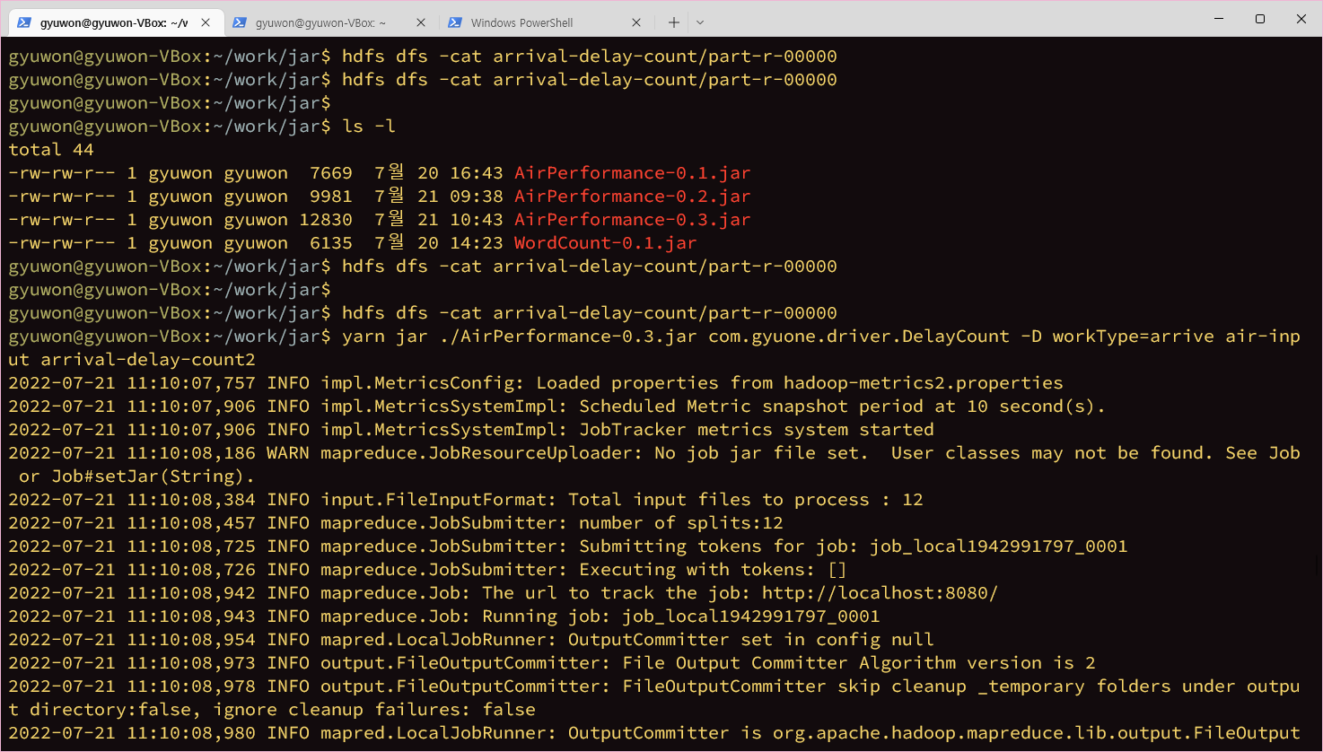AirPerformance-0.3.jar workType=arrive arrival-delay-count2 실행