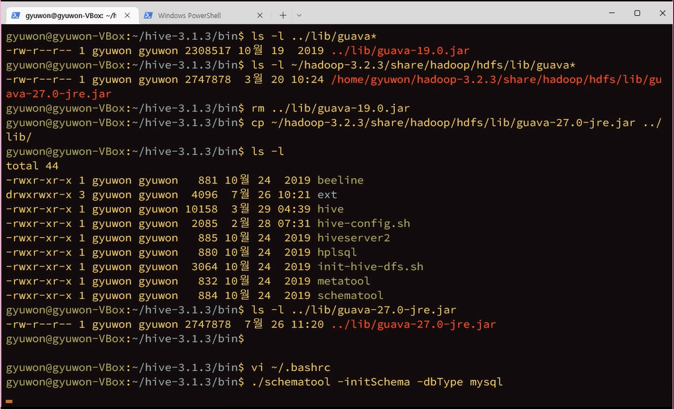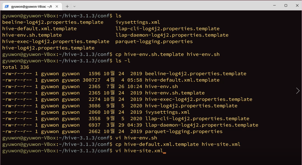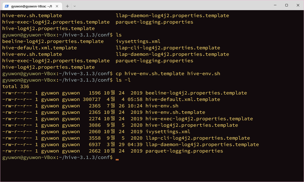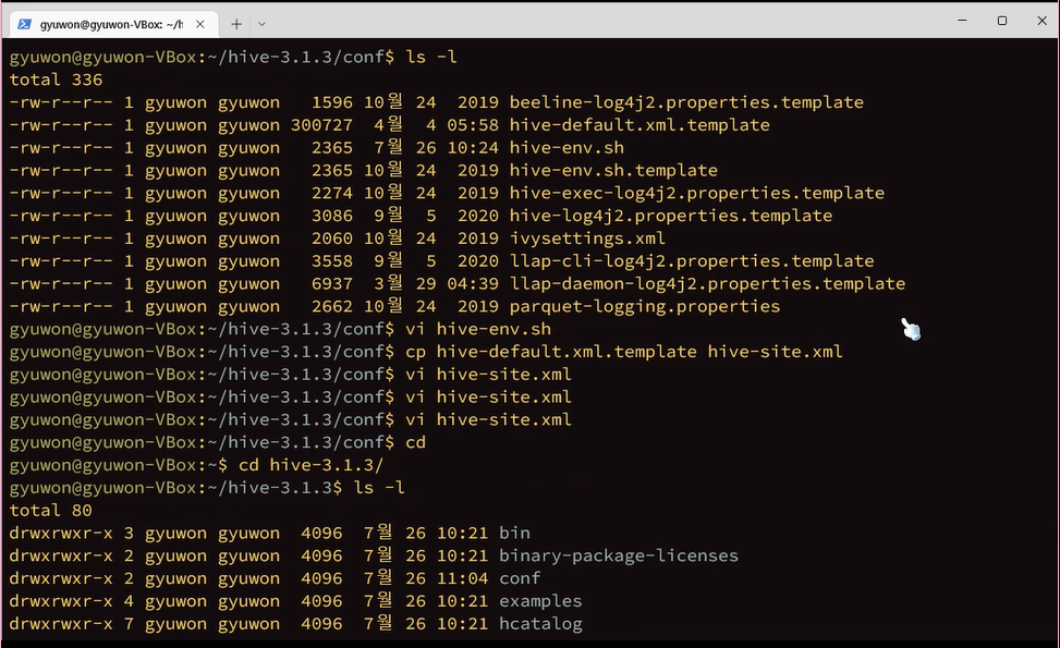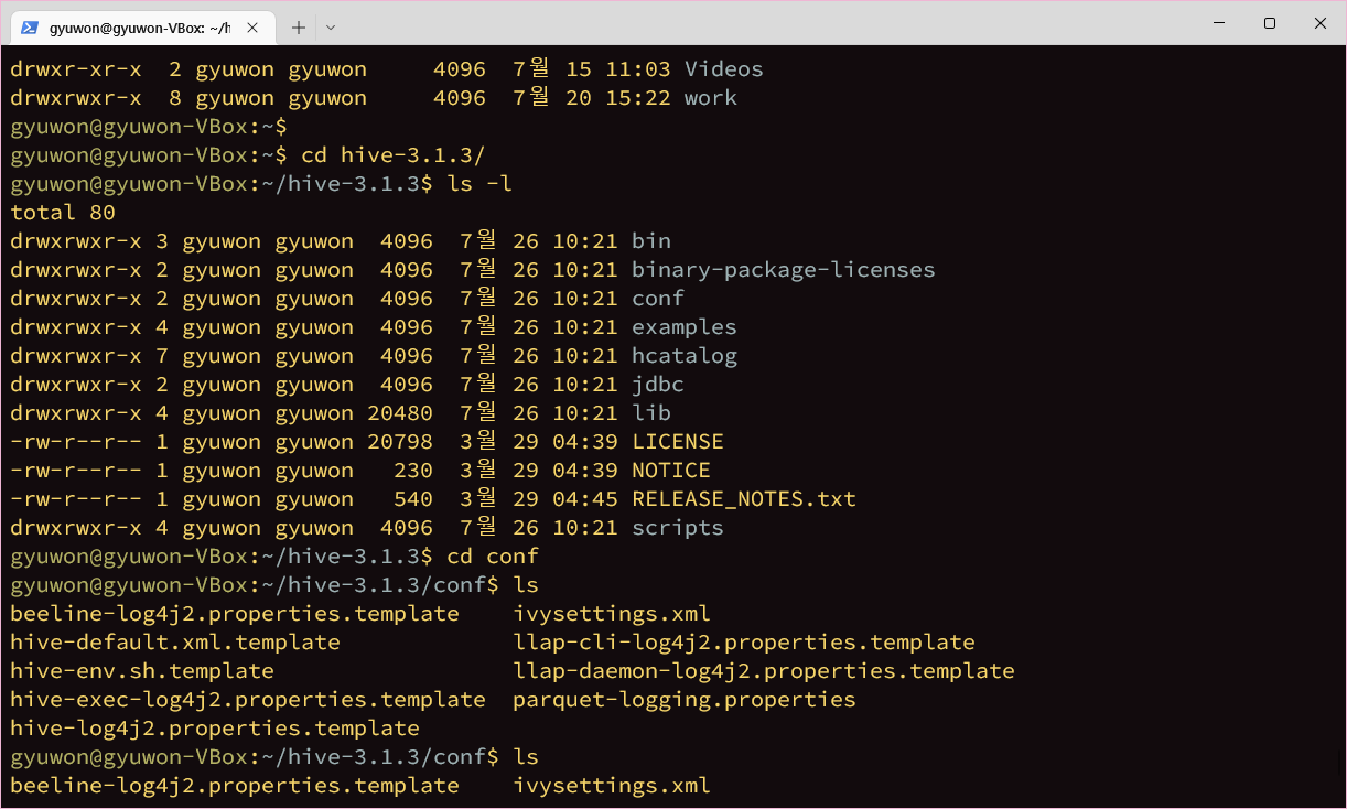 mv apache-hive-3.1.3์ hive-3.1.3์ผ๋ก ๋ฐ๊พธ๊ธฐ