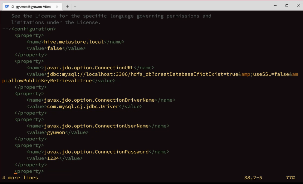 hive-site.xml์ ํด๋ฌ์คํฐ ์ฐ๊ฒฐ์ ์ํ ์ธ๋ถ์ฌํญ์ ์ ์ํ ํ์ผ