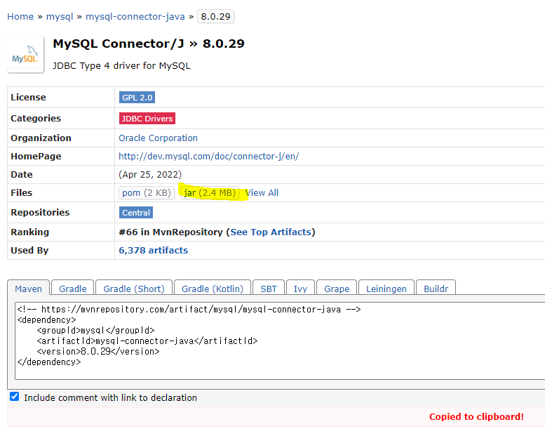 https://mvnrepository.com/artifact/mysql/mysql-connector-java/8.0.29