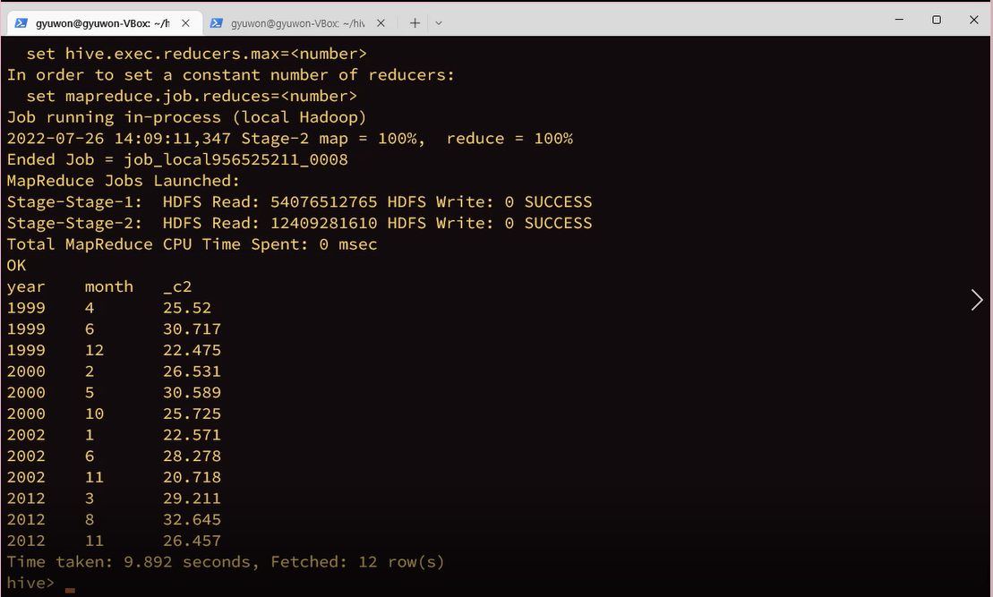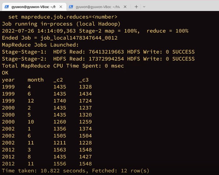 ์ด์ ๊ฐ ๋ค๋ฅธ ์ ํ๋ฆฌ์ผ์ด์ SQL๋ก SQL ํ๋ก mapreduce ์์ ์ ํด์ ๊ฒฐ๊ณผ๋ฅผ ๋ํ๋..