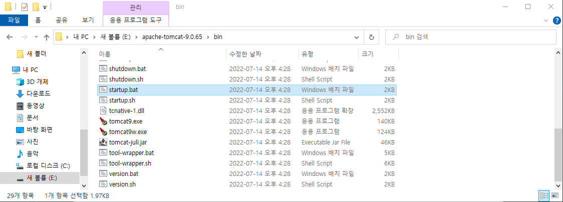 E:\apache-tomcat-9.0.65\bin startup.bat 실행