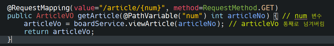 모델을 안만들었지만, 컨트롤러 메서드 안에서 모델로 접근 비즈니스 로직이 들어감. 모델이 데이터베이스까지 접근한다. 그 결과를 다시 준다.